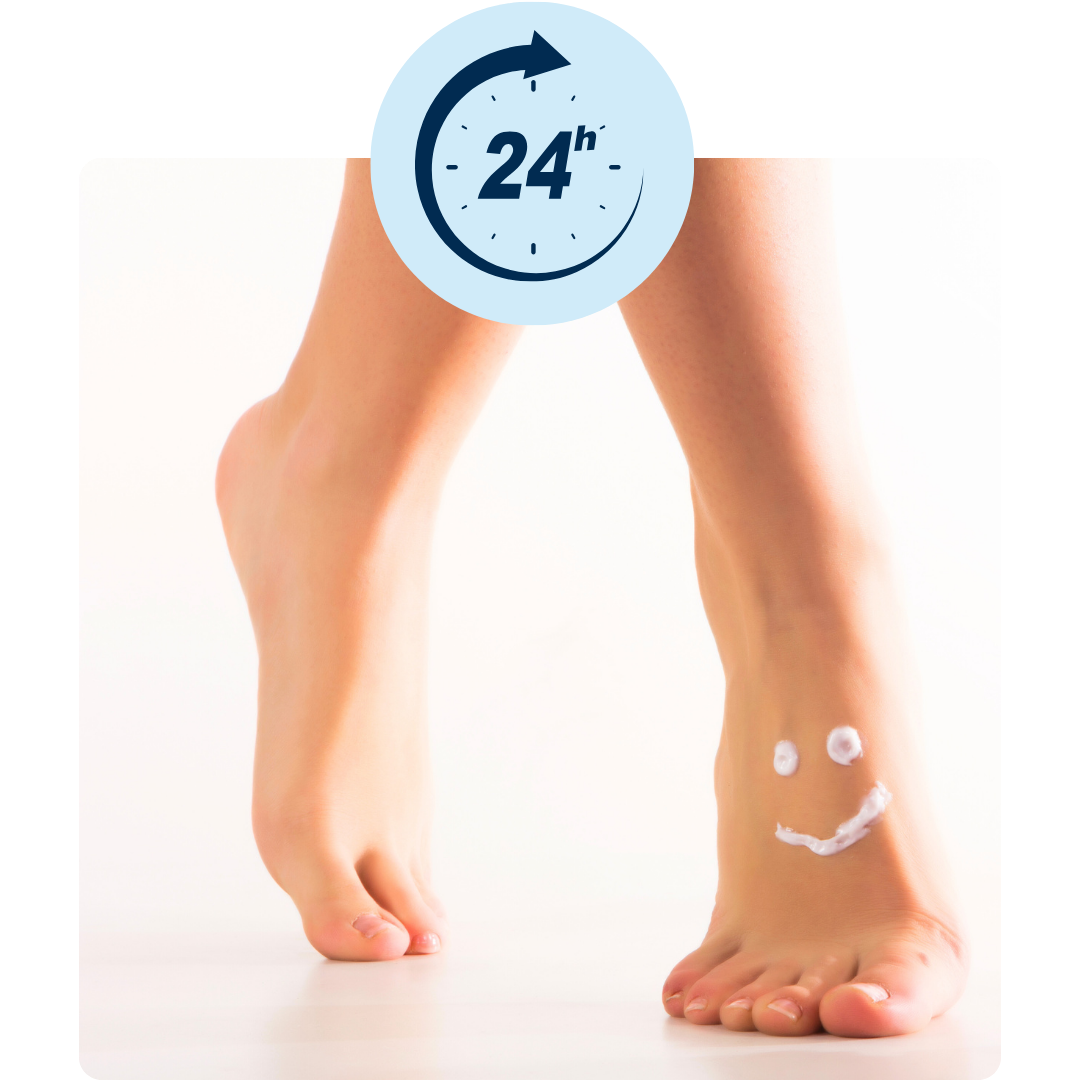 Nanesite balzam nakon svakog tuširanja na čista stopala – jednom ili više puta dnevno. Za intenzivniju njegu, navečer stavite pamučne čarape preko namazanih stopala. - Njega tvrde kože na laktovima i koljenima