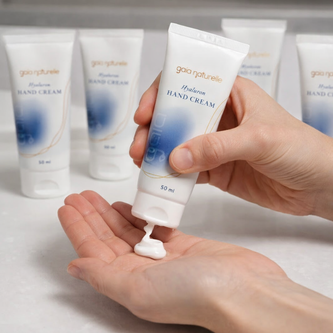 Prirodna hijaluronska krema za ruke s odabranim sastojcima za meku i njegovanu kožu. Krema za ruke sadrži prirodna ulja i maslace, MSM, hijaluronsku kiselinu, niacinamid i vitamin E.