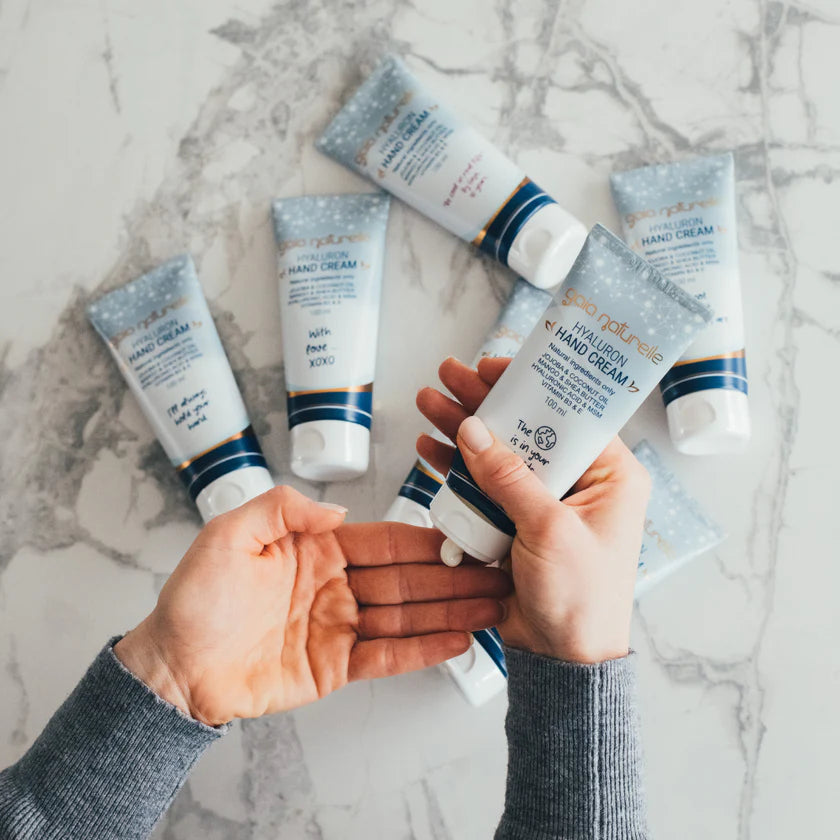 Prirodna hijaluronska krema za ruke s odabranim sastojcima za meku i njegovanu kožu. Krema za ruke sadrži prirodna ulja i maslace, MSM, hijaluronsku kiselinu, niacinamid i vitamin E.